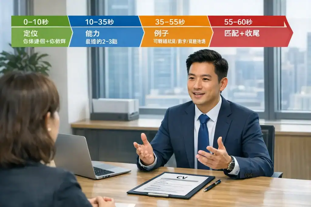 - 香港面試的1分鐘開場,唔係講人生故事,而係講「定位+強項+證據+匹配」。