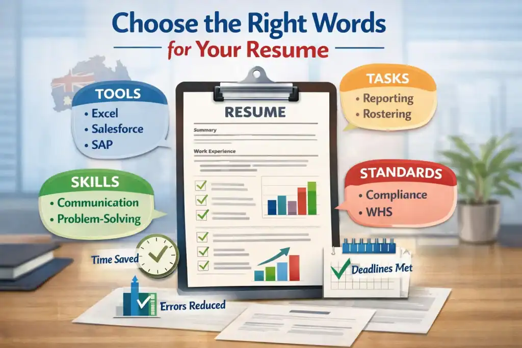 If you’re writing a resume in Australia, the words you choose matter more than most people think. Not because recruiters love fancy language, but because they want quick proof that you fit the role.